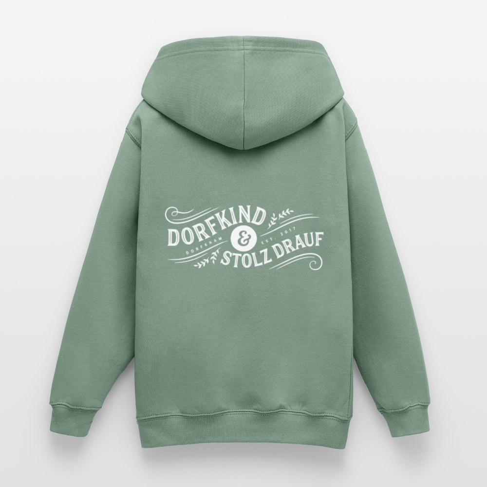 Ob beim Wettrennen auf dem Spielplatz, beim Tiere-Füttern im Stall oder beim Stockbrot am Lagerfeuer – der Dorfkram® Kinderhoodie ist immer dabei. Dank der angerauten Innenseite ist er ist weich, warm und richtig gemütlich und macht jeden Spaß mit - Toben, klettern, spielen. Achtung, hier kommt ein echtes Dorfkind! 💛Dorfliebe verbindet