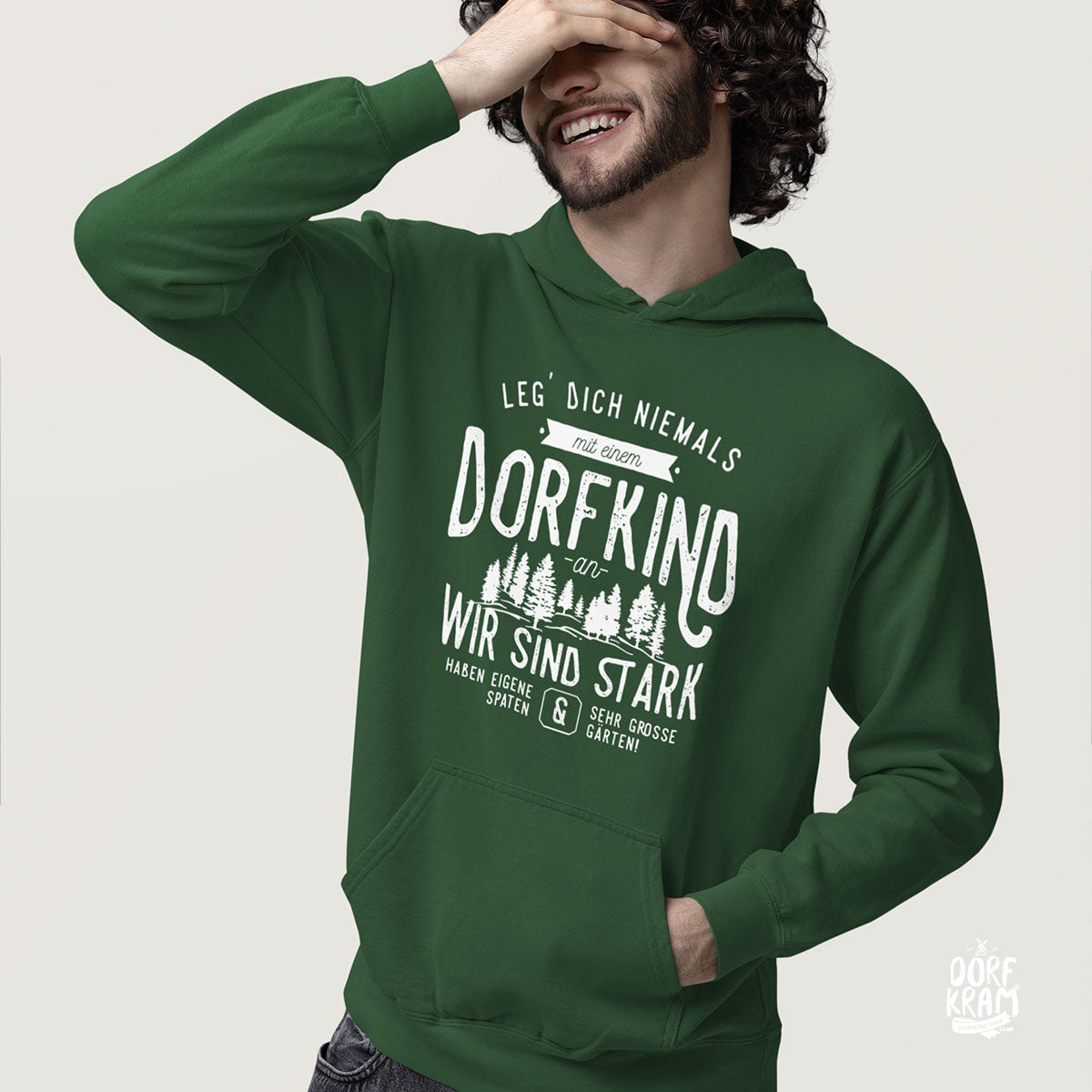 Wenn die Tage kühler werden, ist er zur Stelle: der Dorfkram® Hoodie. Ob du mit dem Trecker übers Feld fährst, mit Freunden feierst oder einfach nur entspannt durchs Dorf schlenderst: Dieser Hoodie passt immer – und macht jeden Dorfmoment ein Stück gemütlicher. 💛 Innen weich angeraut, fühlt er sich flauschig, warm und einfach zum Wohlfühlen an.Dorfliebe verbindet