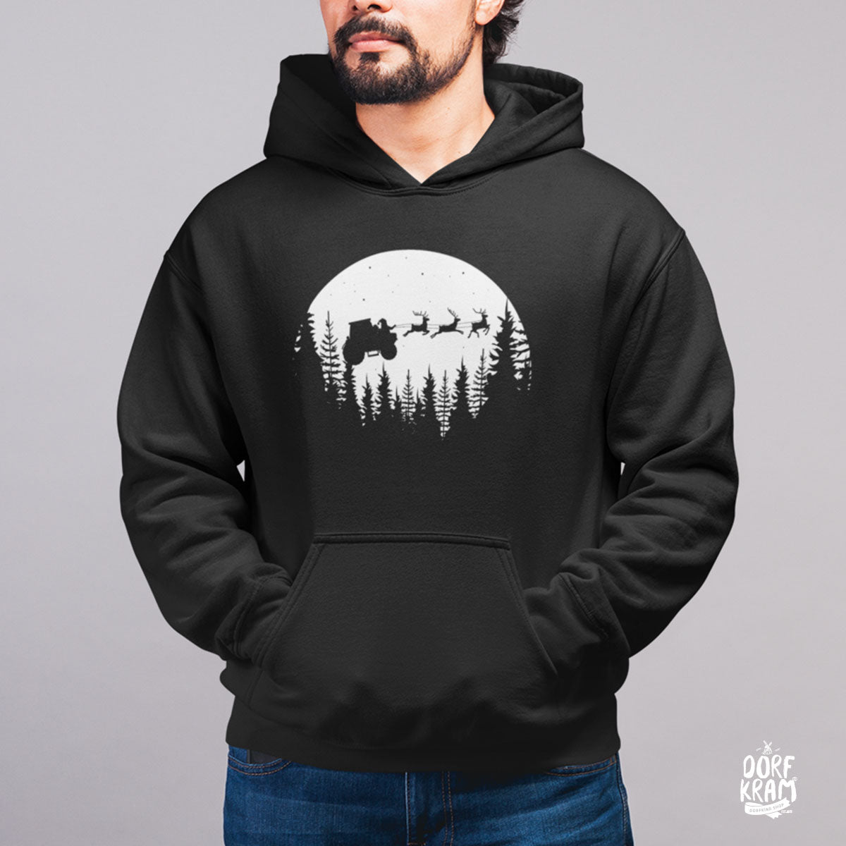 Weihnachtsmann auf Traktor fliegt über Wald / Herren Premium Hoodie