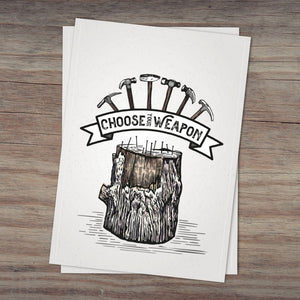 Postkarte / Choose your weapon Nagelbalken Dorfkinderspiel / 2er Pack