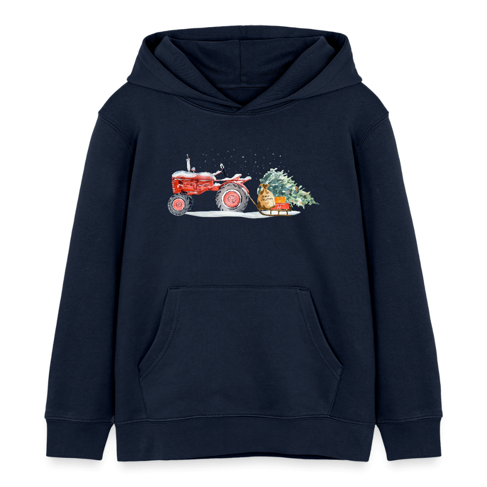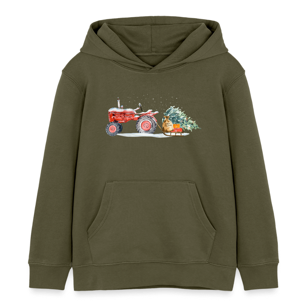 Traktor zieht Weihnachtsbaum mit einem Schlitten / Kinder Organic Hoodie