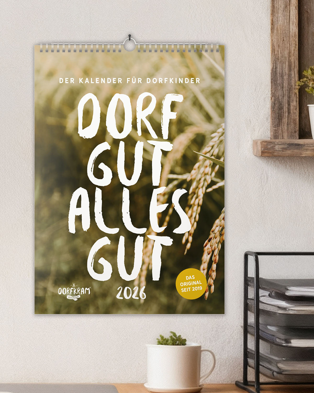 Mit viel Liebe zum Detail gestaltet, ist der Kalender ein echter Hingucker in jedem Raum – egal ob Küche, Wohnzimmer, Flur oder Büro. Kein Wunder, dass der Dorfkind Kalender zu den beliebtesten Dorfkram® Bestsellern gehört.